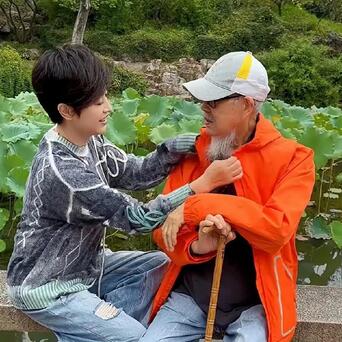陈法蓉带80多岁的老父亲到江苏拙政园游玩,父女俩一路牵着手,勾肩搭背,互动亲密,旁若无人,完全不会觉得尴尬。